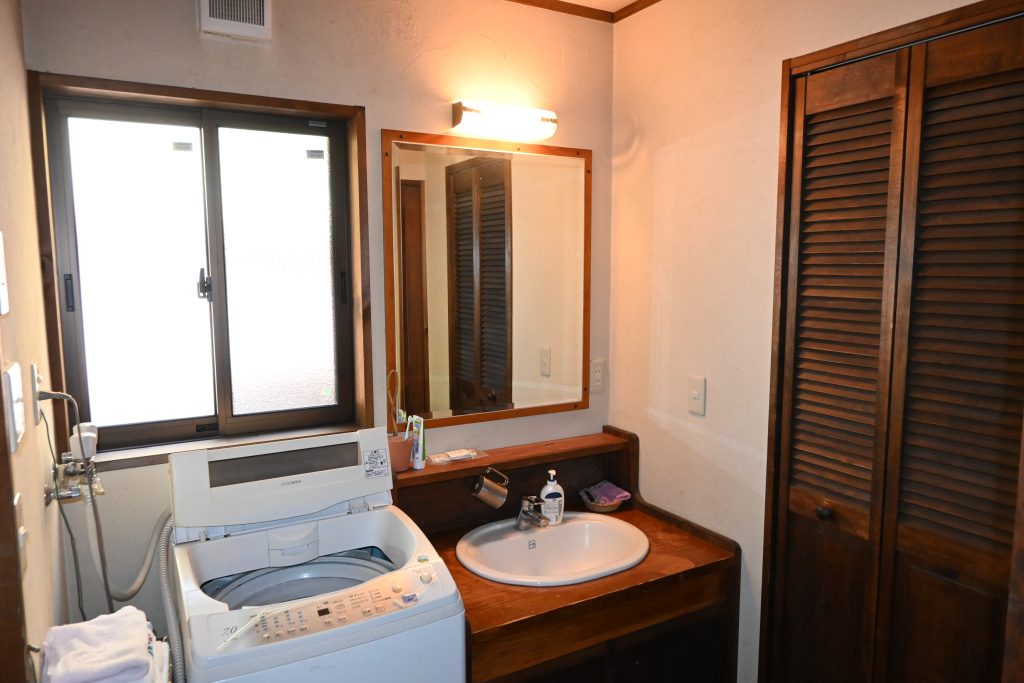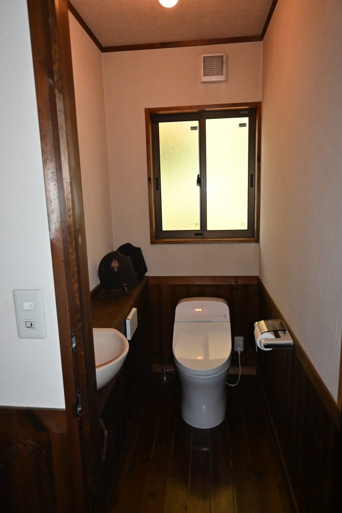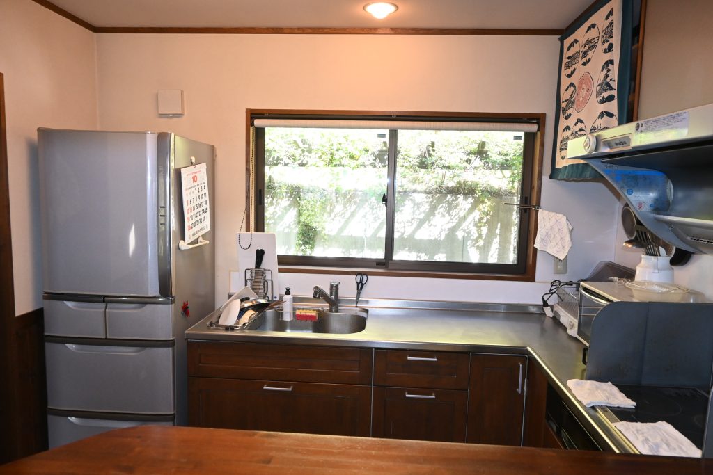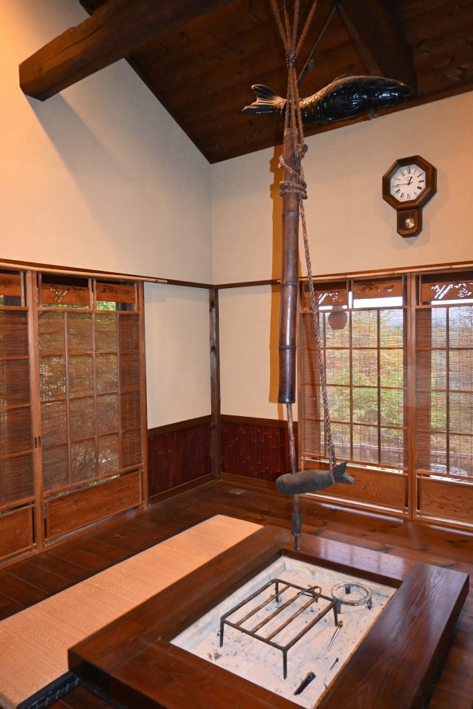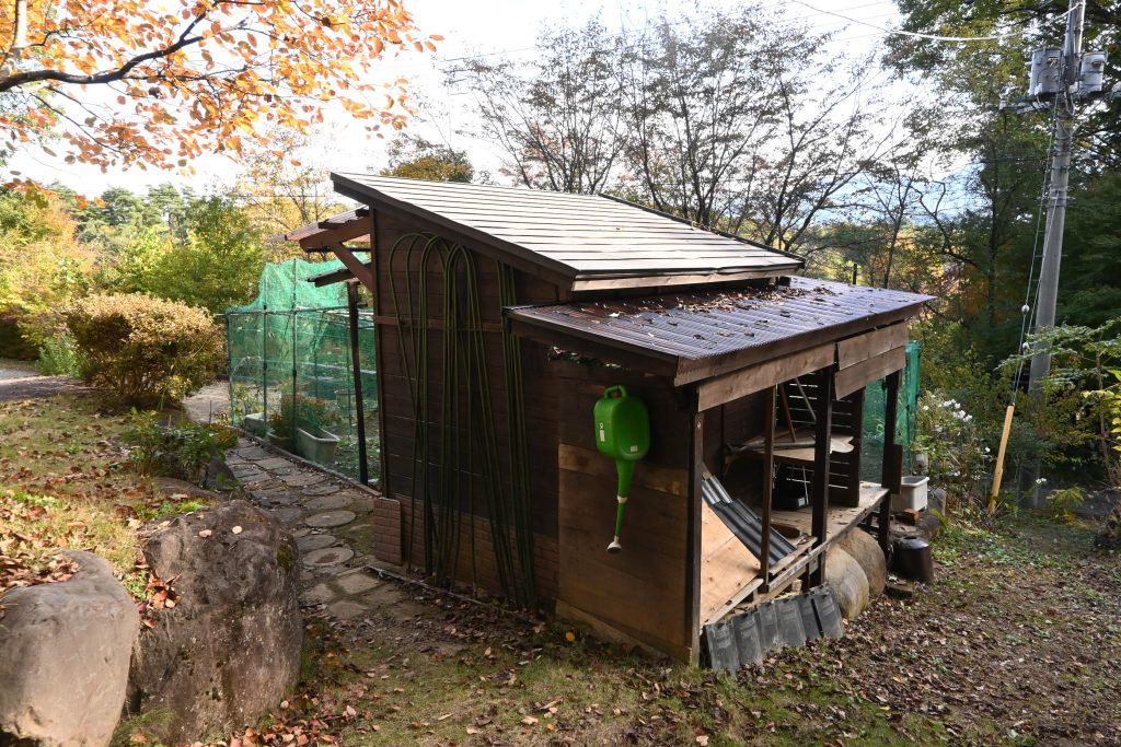 敷地南西側に5坪程の菜園と物置小屋、建物北側には薪棚、囲炉裏部屋の天井には排煙装置、北側にはミニキッチンあり。