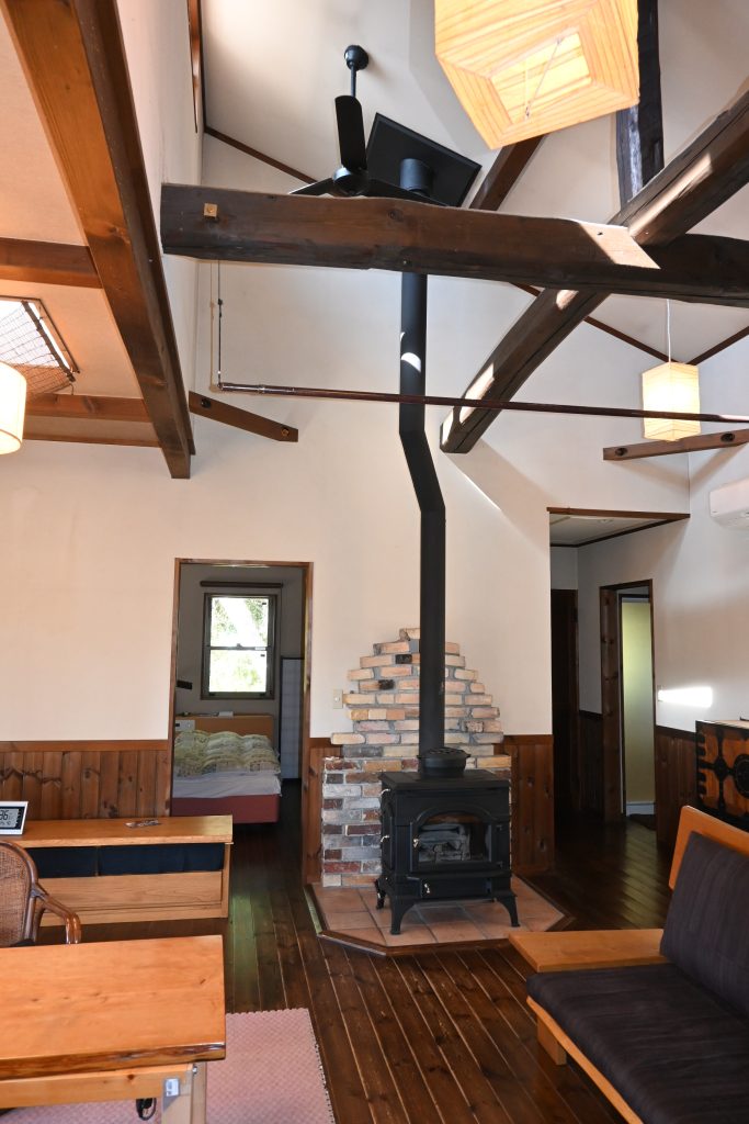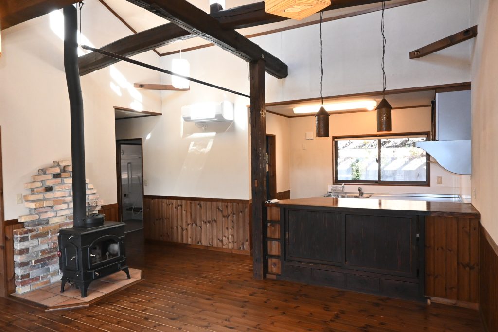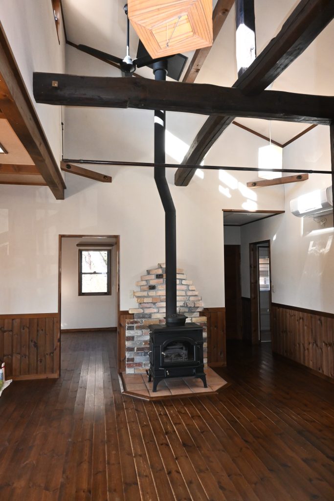 オーナーが信頼する長野県安曇野の業者に「好きなように建てて下さい」と依頼して建てた築19年の薪ストーブと囲炉裏のある重厚な平屋。