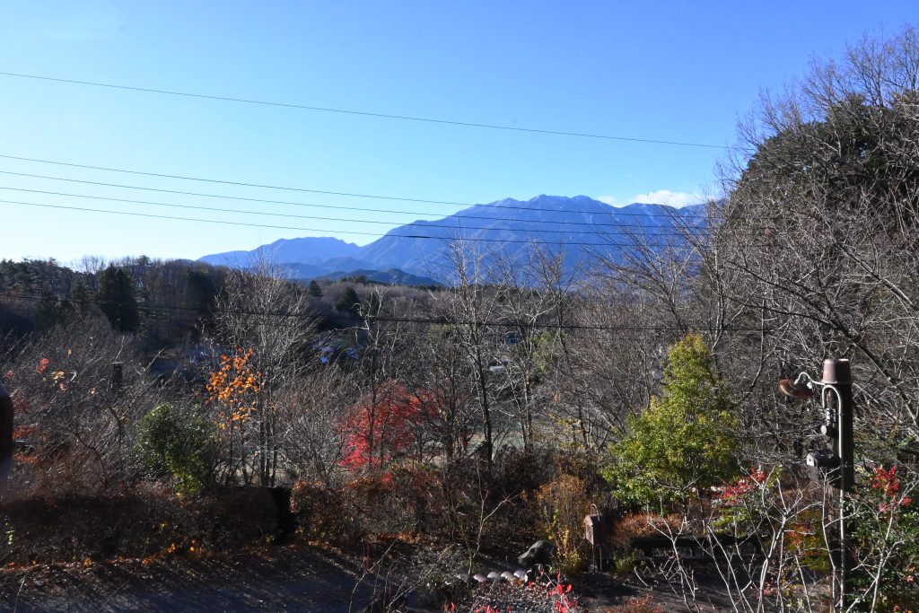 高台から見下ろす南方向には畑が広がり、冬季は南アルプス鳳凰三山・甲斐駒ヶ岳を眺望できます。