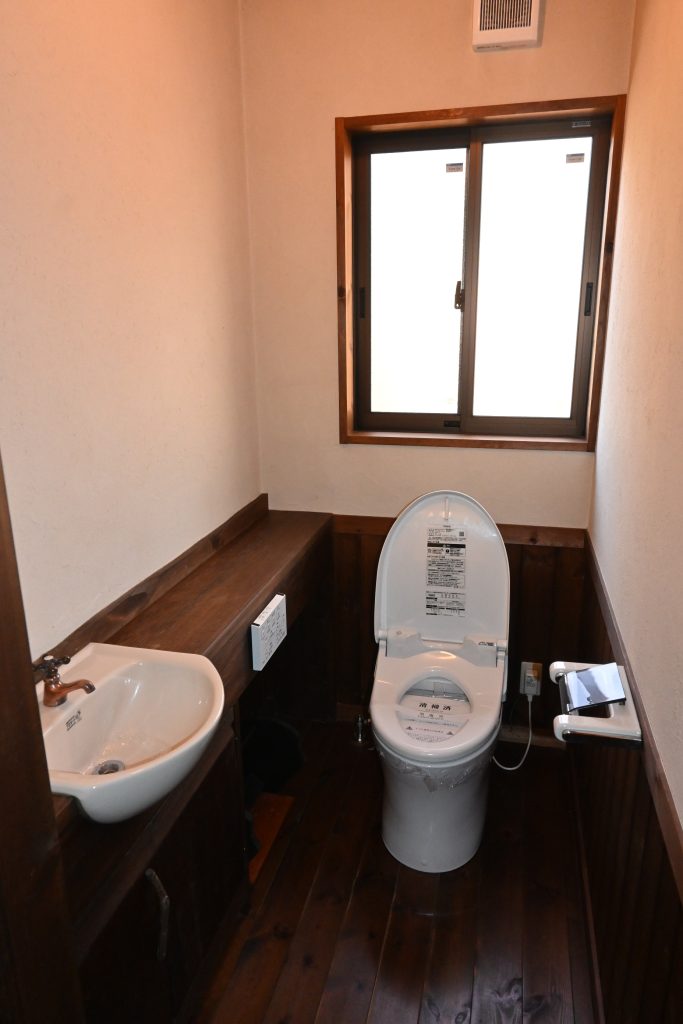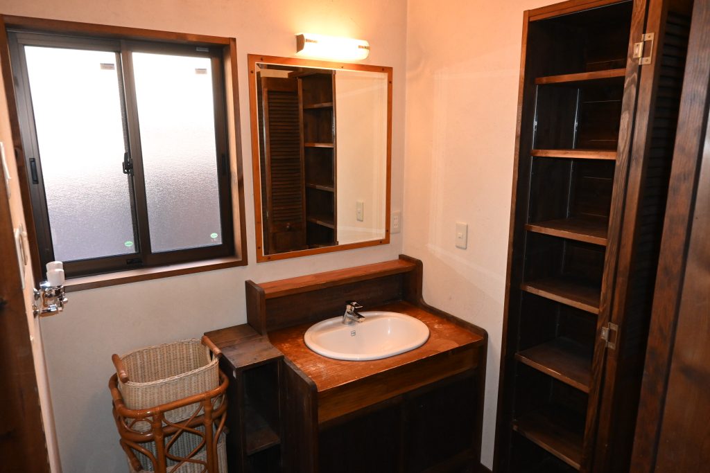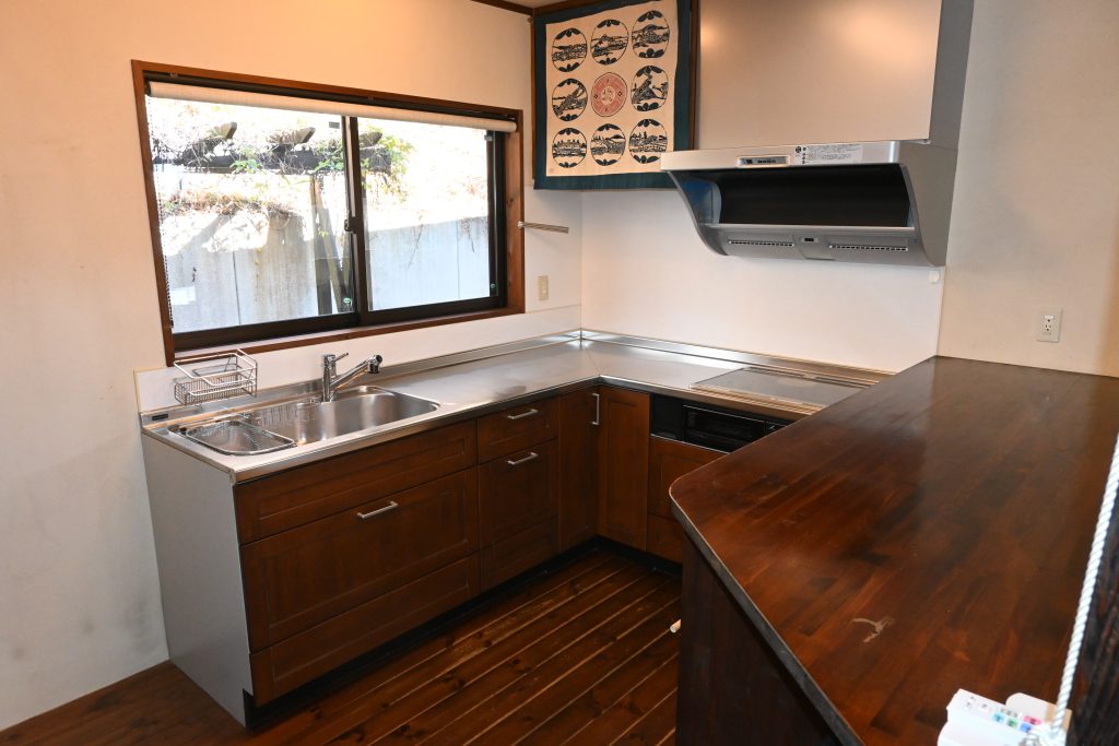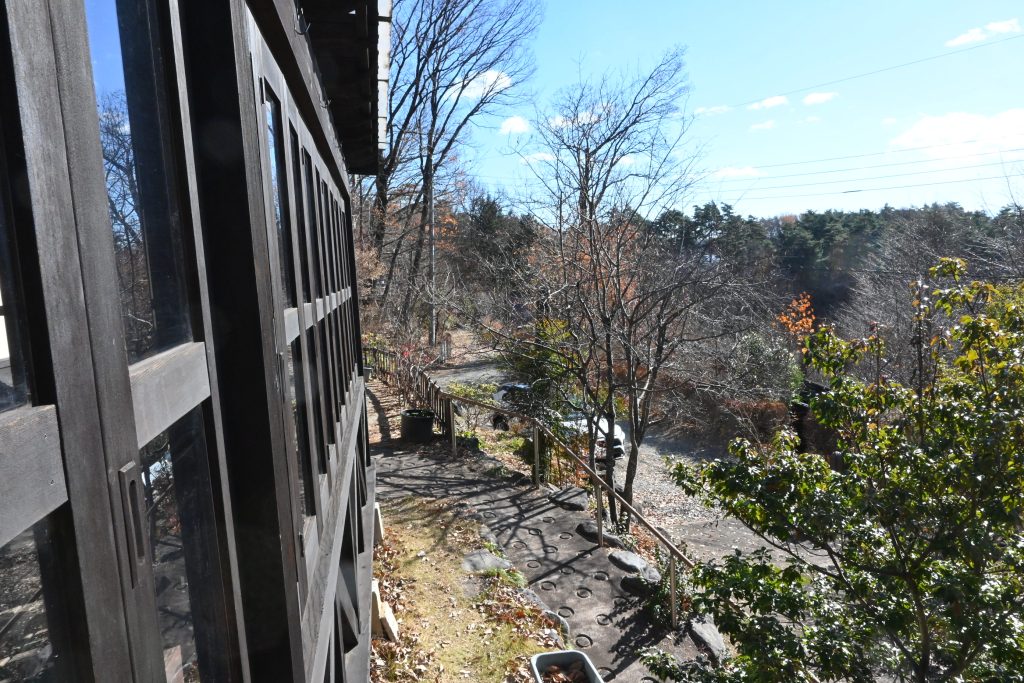 敷地南西側に5坪程の菜園と物置小屋、建物北側には薪小屋、囲炉裏部屋の天井には排煙装置、北側にミニキッチンあり。