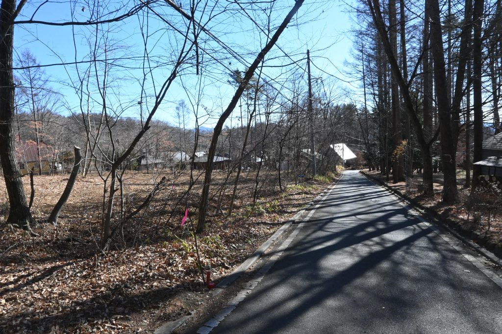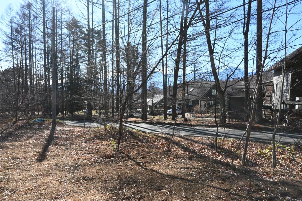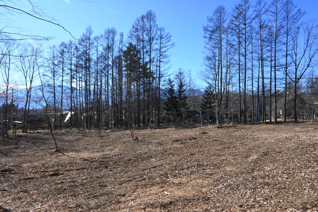物件北側はカラマツ林、東・西・南側は適度な樹木に囲まれた別荘地で、冬季は南アルプスの稜線を眺望する清々しい環境です。