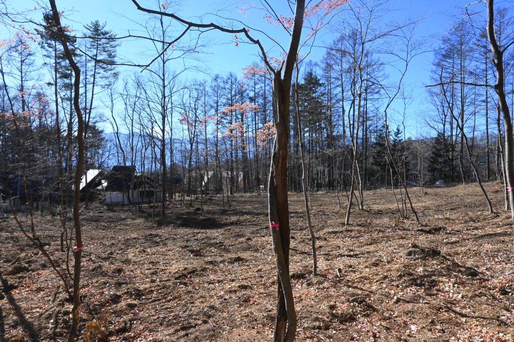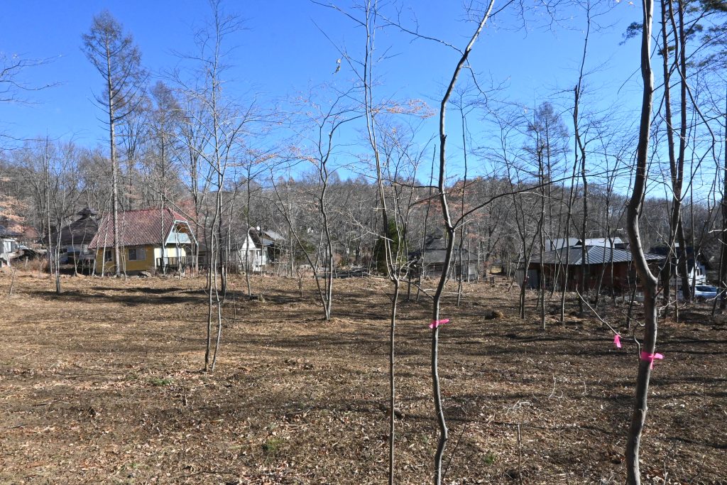 敷地内樹木はもみじ等の落葉樹のみ残し、樹高10m程度以上の大木は全て伐採伐根整地済。